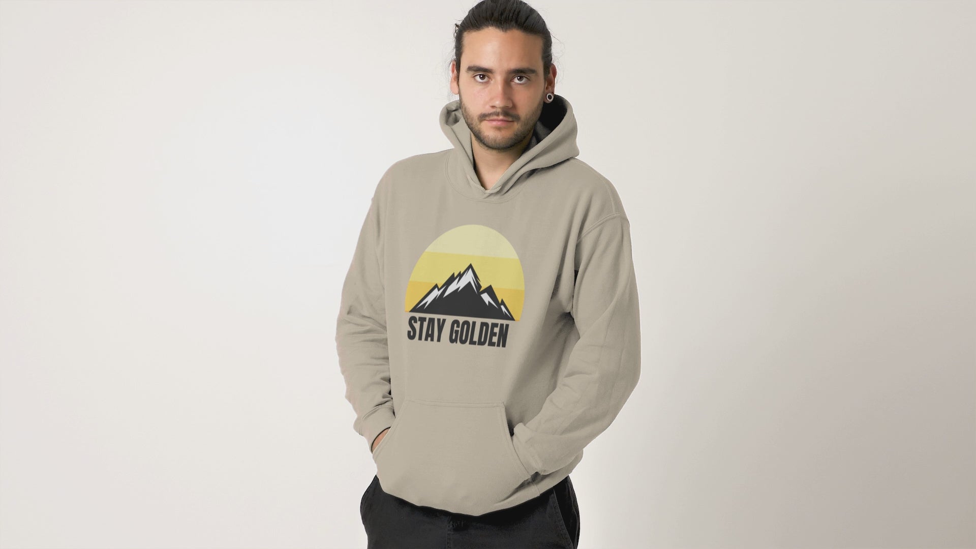 Chase golden horizons with the Stay Golden Mountain Hoodie—cozy and inspired by sunlit peaks and mindful adventures.